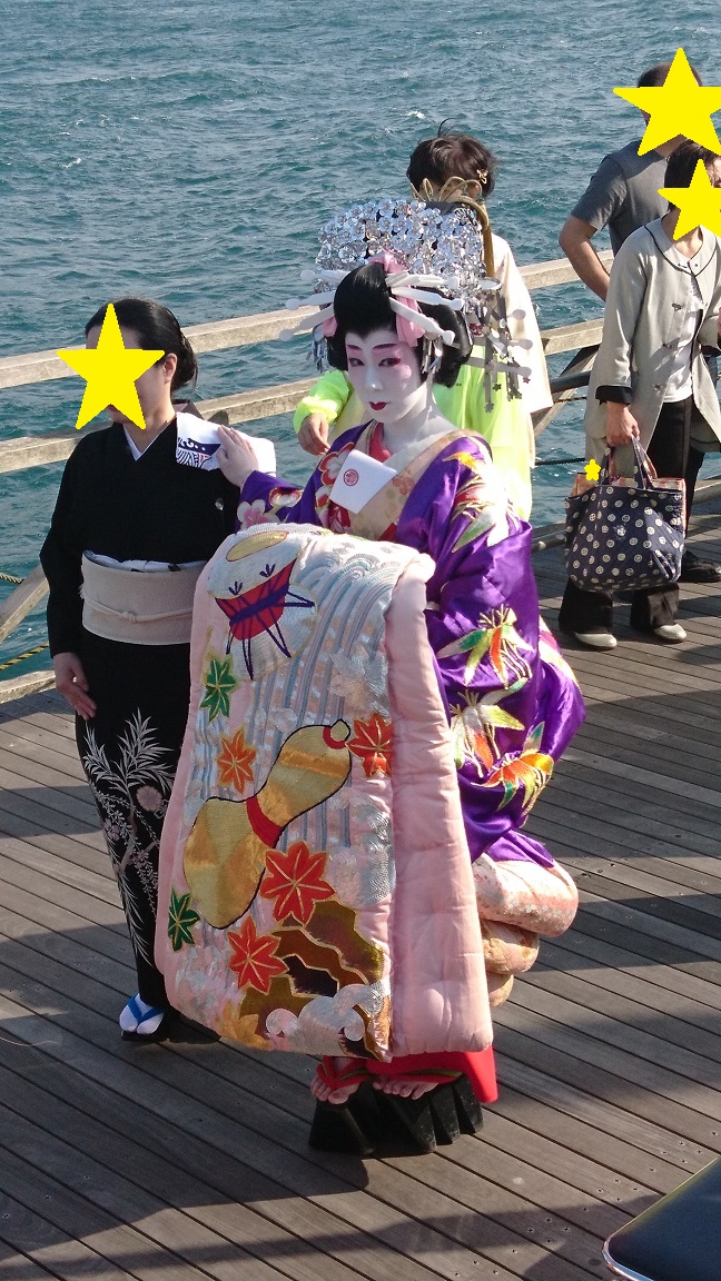 身体をひねらして歩く姿は、何とも言えない切なさを感じ、また艶やかな着物がそれを引き立たせ、古の時代を感じさせるものがありますよ!