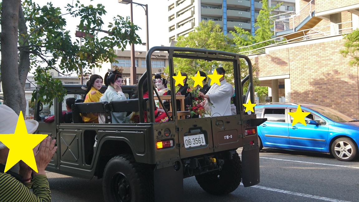 本来は、一番太夫(振袖太夫)、二番太夫、三番太夫、四番太夫、五番太夫(傘留太夫)と、5人の花魁さんが、外八文字を披露します。