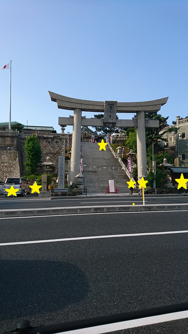 これは、赤間神宮からそんなに遠くない場所にある、亀山八幡宮という所の鳥居です。